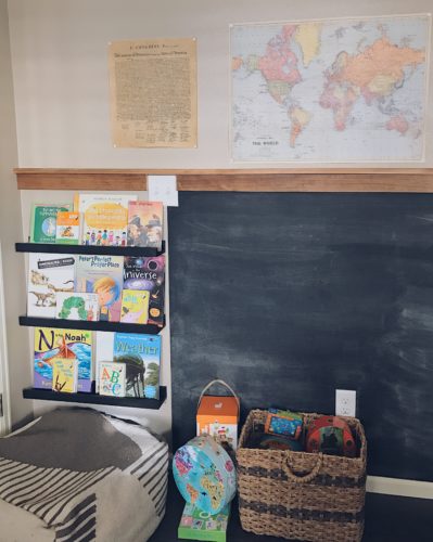My oldest is always the first one up, he comes and wakes me up when his clock turns green, at 7:00. Then we go find breakfast and wait for Sister to wake up. I feed the baby. We close Dad’s door, so he can sleep in.